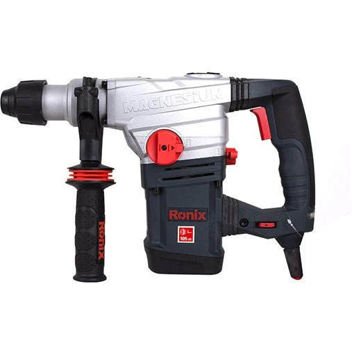 ظرف گریس، میله تنظیم عمق، دسته جانبی طراحی شده توسط رونیکس و کیف حامل متهها شامل: یک مته SDS-PLUS 8x150 یک مته SDS-PLUS 10x150 یک مته SDS-PLUS 12x150 یک مته نوک تیز SDS-PLUS 14x250 یک مته نوک تخت SDS-PLUS 14x250