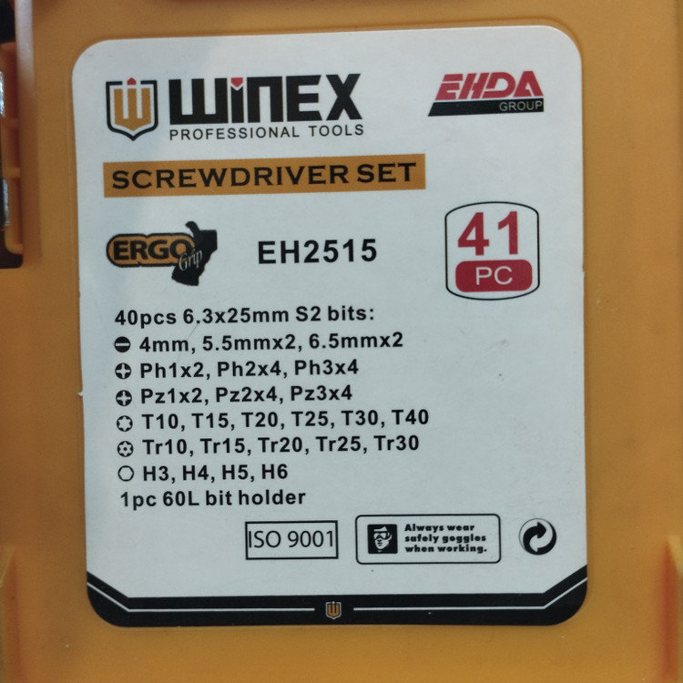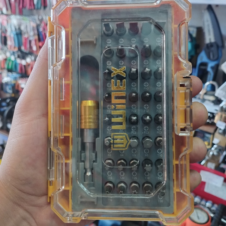 5 سری پیچگوشتی دوسو در سایزهای 4 و 5.5 و 5.5 و 6.5 و 6.5 میلیمتر , 10 سری پیچگوشتی چهارسو در سایزهای PH1 , PH1 , PH2 , PH2 , PH2 , PH2 , PH3 , PH3 , PH3 , PH3 , 10 سری پیچگوشتی چهارسوی خاردار در سایزهای PZ1 , PZ1 , PZ2 , PZ2 , PZ2 , PZ2 , PZ3 , PZ3 , PZ3 , PZ3 , 6 سری پیچگوشتی ستارهای در سایزهای T10 , T15 , T20 , T25 , T30 , T40 , 5 سری پیچگوشتی ستارهای سوراخدار در سایزهای Tr10 , Tr15 , Tr25 , Tr30 , Tr20 , 4 سری پیچگوشتی آلنی در سایزهای H3 , H4 , H5 , H6 , 1 رابط 6 سانتیمتری برای نصب سریهای پیچگوشتی