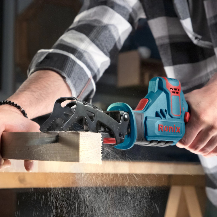 🔵اره افقیبر شارژی 8103K رونیکس، یکی از محصولات All In One و پرکاربرد در سری 81 رونیکس بوده و از آن برای ایجاد برشهای صاف یا منحنیشکل در سطوح چوبی، فلزی، لولههای PVC، مواد و مصالح ساختمانی استفاده میشود. در این اره شارژی، برشهای افقی با حرکت رفت و برگشتی تیغه انجام میشود. ساختار کلی این دستگاه بسیار شبیه به اره عمودبر بوده و تنها تفاوت آن با اره عمودبر، در زاویهی برش و روش در دست گرفتن دستگاه است.
